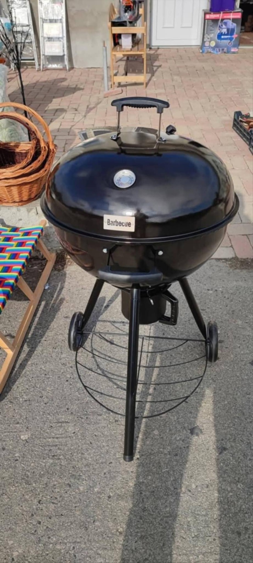 Faszenes grillsütő fedővel, hőmérővel, kerekekkel